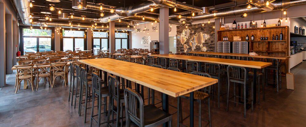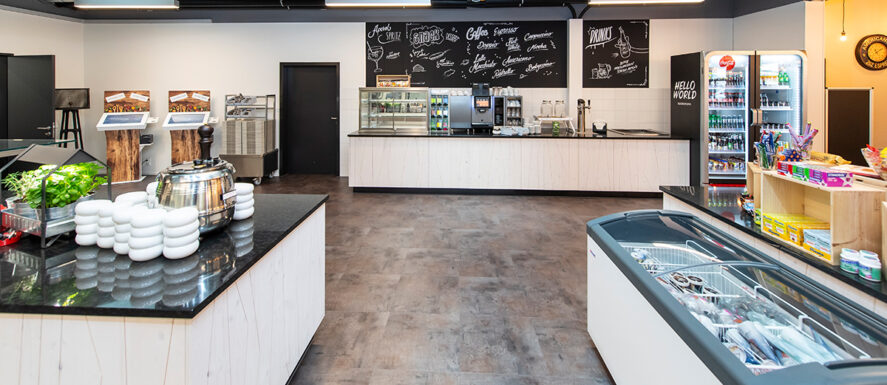 Das vierte Lokal der Hello World Gruppe ist ein Mensa Betrieb für die Angestellten der benachbarten Firmen. Zu einem späteren Zeitpunkt wird es auch am Abend als à la Carte Restaurant geöffnet sein.