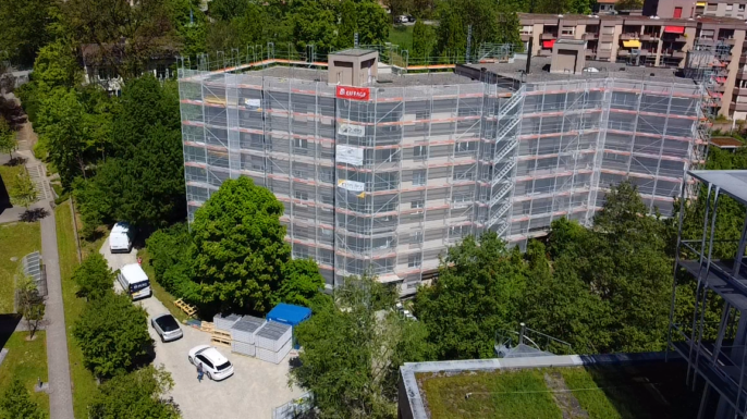 Die Liegenschaft, erbaut im Jahr 1989, umfasst sechs Geschosse und insgesamt 36 Wohneinheiten. Sie wird im bewohnten Zustand einer nachhaltigen Gesamtsanierung unterzogen. Dabei legen wir grossen Wert auf die Einhaltung aller gesetzlichen und technischen Vorgaben sowie auf eine nachhaltige Bauweise.