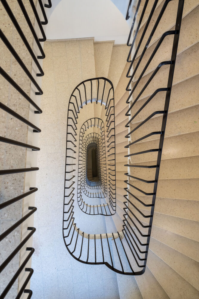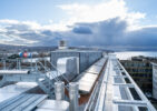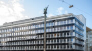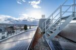 Die Skelettbauweise blieb auch nach dem Umbau bestehen. Die Glasbänder der neuen vorgehängten Glas-Metallfassade sind mit Photovoltaikmodulen aktiviert.