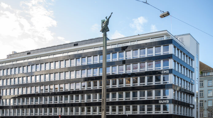 Das Suva-Gebäude am linken Ufer des Schanzengrabens, gegenüber vom Hotel Baur au Lac, ist ein charakteristischer Zeitzeuge der Sechzigerjahre. Neben der Geschäftsstelle der Suva, welche das Erdgeschoss und das erste bis 2. Obergeschoss besetzt, gibt es in den weiteren vier Obergeschossen attraktive Büroflächen. Grundsätzlich sind sowohl Open Space Offices sowie auch kleinteilige Büro-Zellenstrukturen in den klar gegliederten und flexiblen Grundrissen möglich. Nach der Revitalisierung entsprechen nun sämtliche Mietflächen den heutigen Bedürfnissen von Dienstleistungsflächen im innerstädtischen Gebiet.