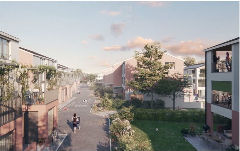 Durch eine gemeinsame unterirdische Einstellhalle sind alle Mehrfamilien-und Reiheneinfamilienhäuser miteinander verbunden