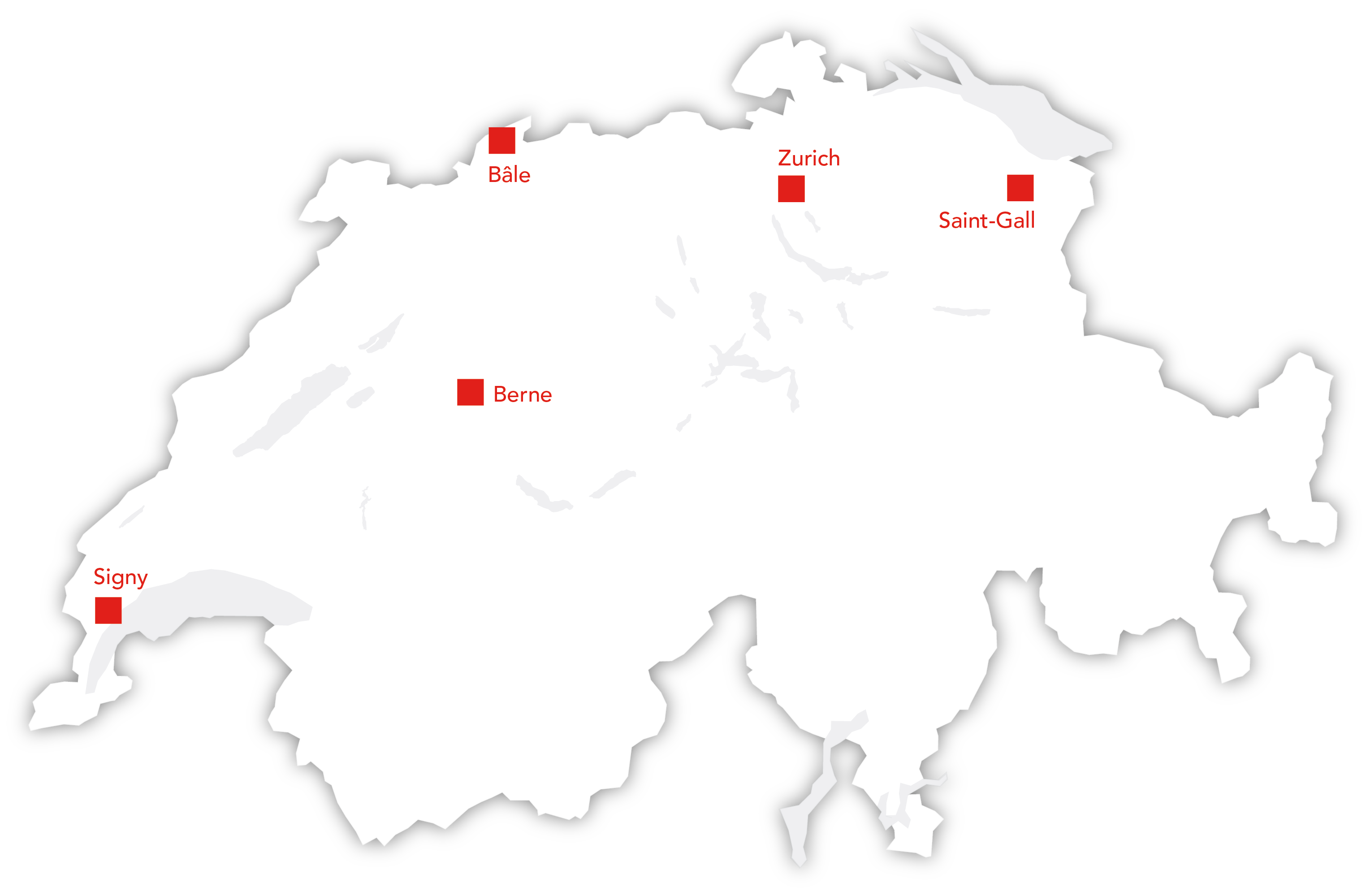 Nous sommes ancrés dans les régions et proches de chez vous. Au total, Eiffage Suisse est représentée cinq fois en Suisse par des succursales à Bâle, Berne, Saint-Gall, Signy et Zurich.