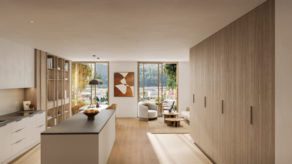La résidence bénéficie de la proximité des transports publics et le centre de Naters n’est qu’à quelques minutes en voiture. Les commerces, les écoles et les lieux de loisirs sont également facilement accessibles. Ainsi, le projet combine les avantages d'un environnement calme et proche de la nature avec les commodités de la vie urbaine.